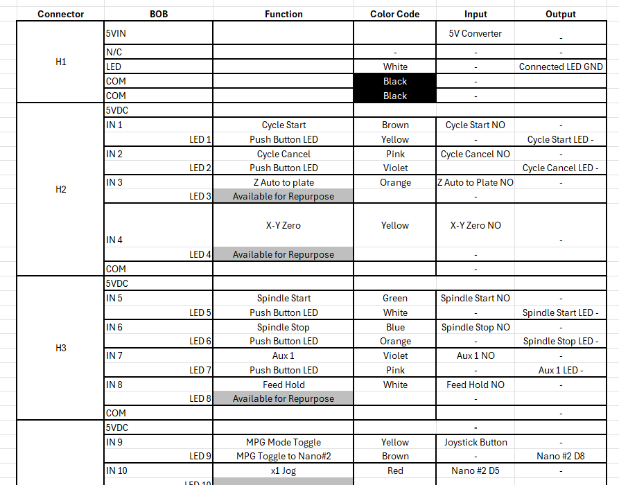 I created a dimensioning spreadsheet to assist with the design and wiring of the BOB.